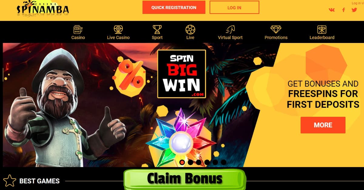 Read the full review of the casino Spinamba and get the no deposit bonus!